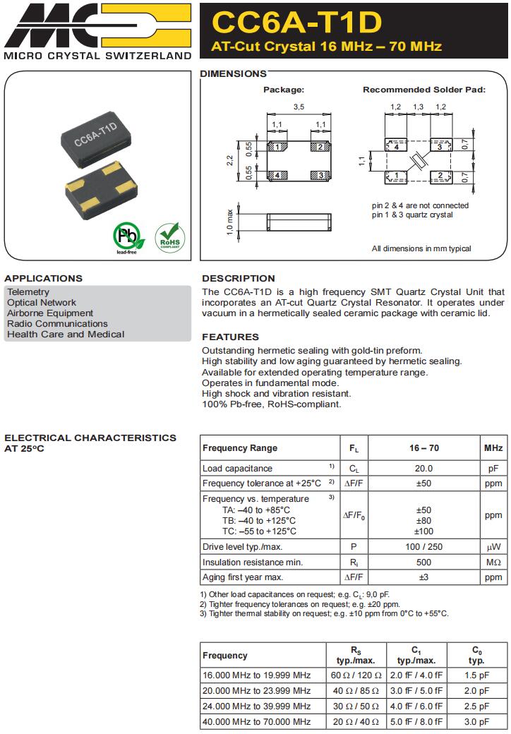 CC1V-T1A-1.8432MHz-10pF-500PPM-TA-QC | Micro Crystal | 晶體 1.8432 MHz 10.0 pF +/-500 PPM -40/+85C |