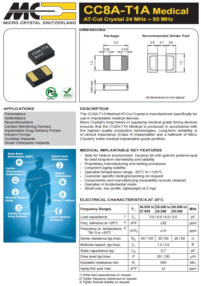 CC1V-T1A-2.000MHz-10pF-100PPM-TA-QC | Micro Crystal | 晶體 2.000 MHz 10.0 pF +/-100 PPM -40/+85C |