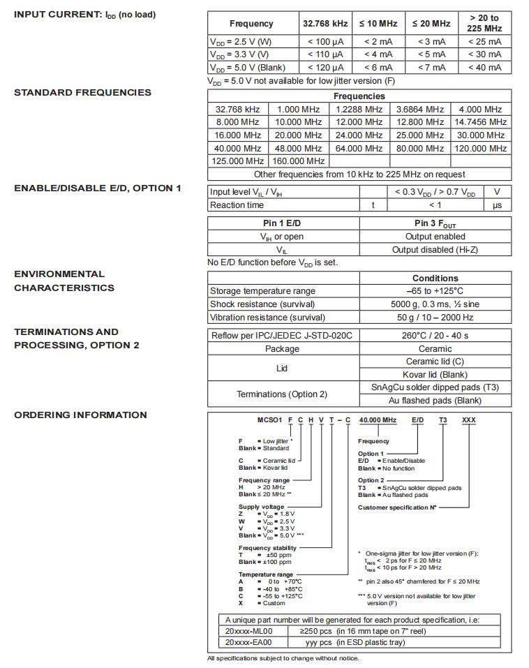 MCSO1CHVT-B-32.000MHz-E/D-T3,6G路由器晶振,高頻貼片振蕩器規(guī)格表