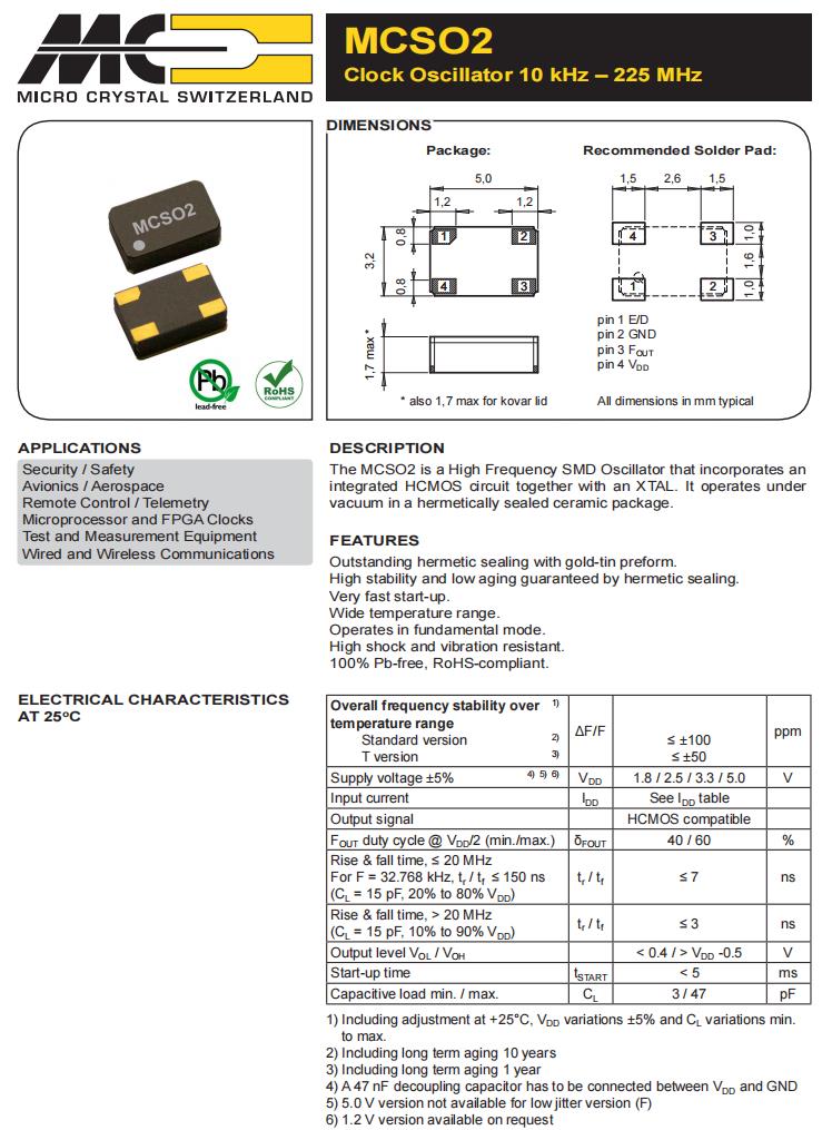 OV-0100-C7-100.000kHz-50PPM-TA-QC | Micro Crystal | 標準時鐘振蕩器 100.0 kHz +/-50 PPM -40/+85C |