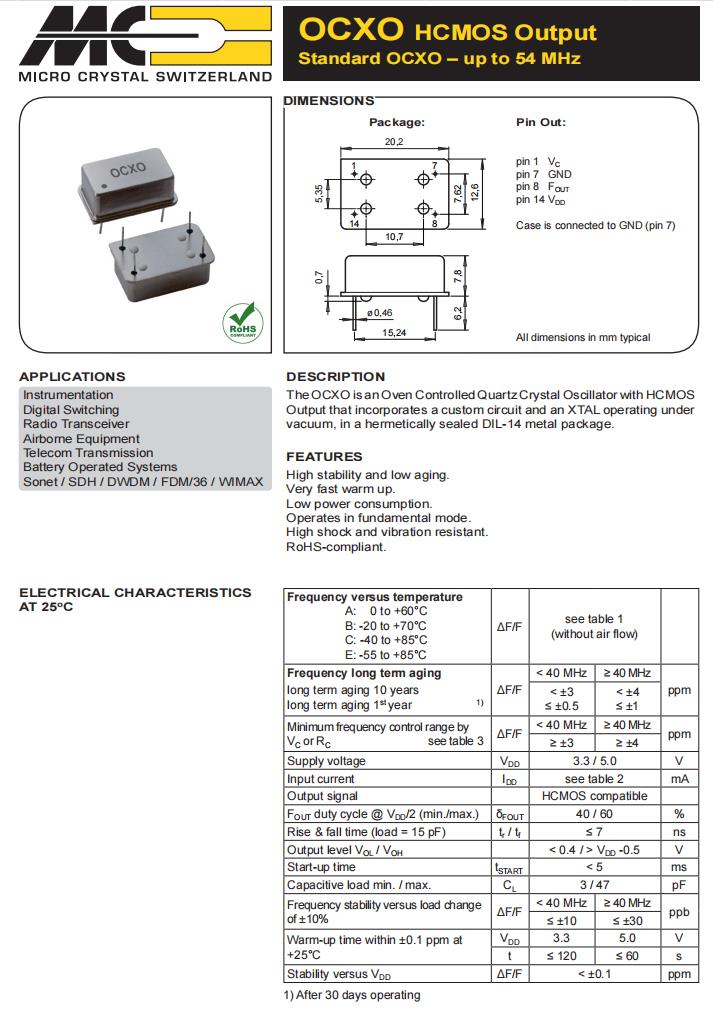 OCXOW-CV3-16.000MHz-D2|OCXO晶體振蕩器|6G基站晶振,瑞士微晶晶振,OCXO晶體振蕩器,OCXOW-CV3-16.000MHz-D2晶振,有源晶振,頻率16MHz,電壓3.3V,頻率穩(wěn)定性500ppb,工作溫度-40~85°C,高可靠性晶振,低功耗晶振,6G基站晶振,數(shù)字交換晶振,無(wú)線電收發(fā)信機(jī)晶振,機(jī)載設(shè)備晶振.