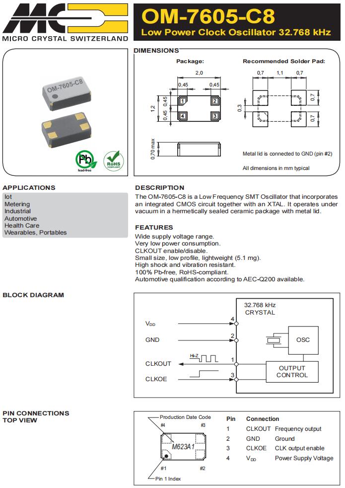 CC7V-T1A-32.768k-12.5pF-20PPM-TA-QA | Micro 晶振 | 晶體 32.768 kHz 12.5 pF +/-20 PPM AEC-Q200 | Crystals |