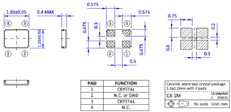 NKG晶振|S1M25.000F18E23-EXT|1612mm超小型晶振尺寸圖