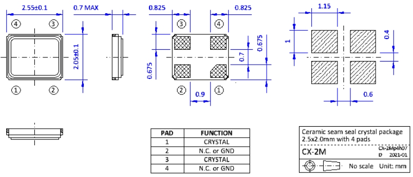 香港NKG晶體|S2M40.000F16M1Y-EXT|2520貼片晶振尺寸圖
