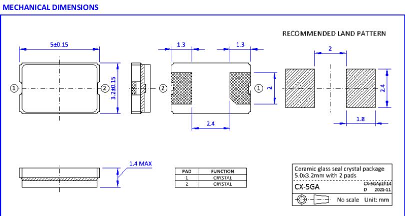 NKG晶振|S5GA38.400F18M25-EXT|5032無源晶振尺寸圖