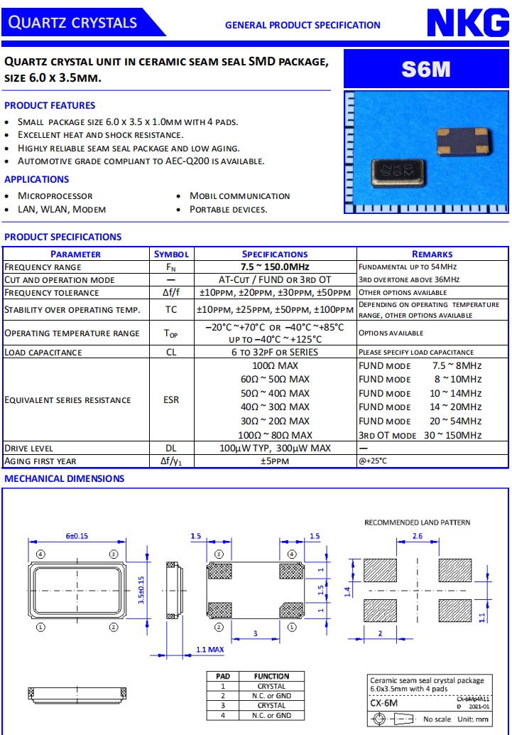 NKG晶體|S6M19.200F18M23-EXT|6035mm晶振規(guī)格表
