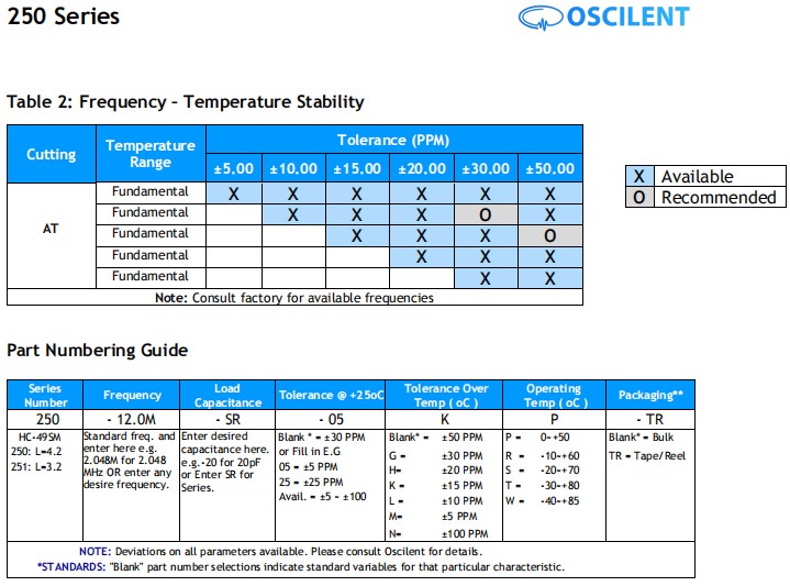 OSCILENT晶振,250-14.7456M-20-05KS-TR,6G無線局域網(wǎng)晶振規(guī)格表