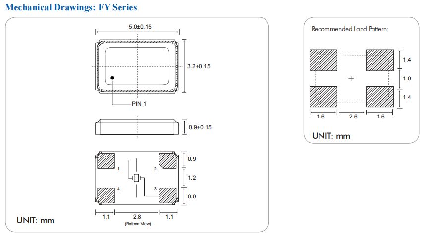 FY1200011 | Diodes晶振 | FY | 12MHz | ±30ppm | ±20ppm | 18pF | -20°C ~ 70°C |