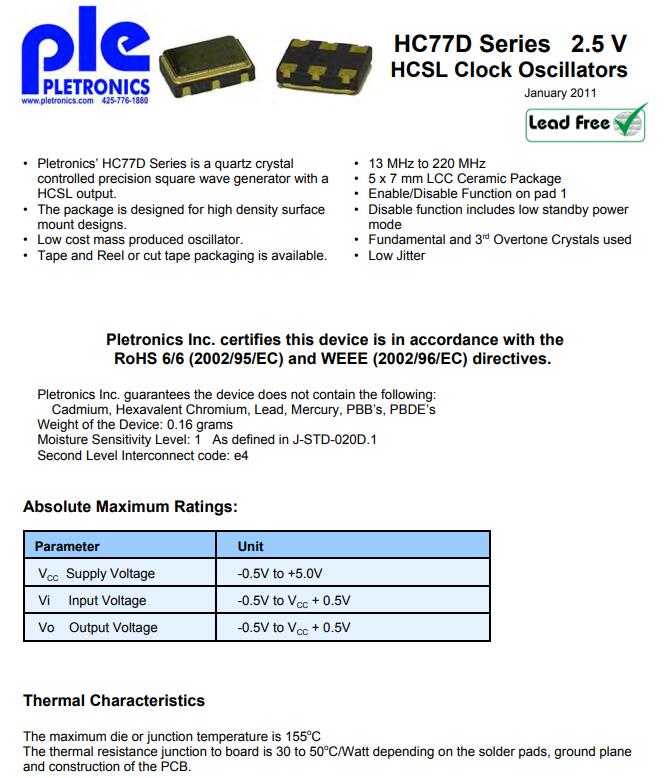 Pletronics晶振公司關(guān)注用戶需求,不斷研發(fā)新品,改善現(xiàn)有產(chǎn)品.能夠滿足不同客戶對于石英晶振, 貼片晶振,溫補晶體振蕩器等頻率控制元件的需求提供一個完整的解決方案.普銳特晶振,HC77D晶振,7050有源晶振