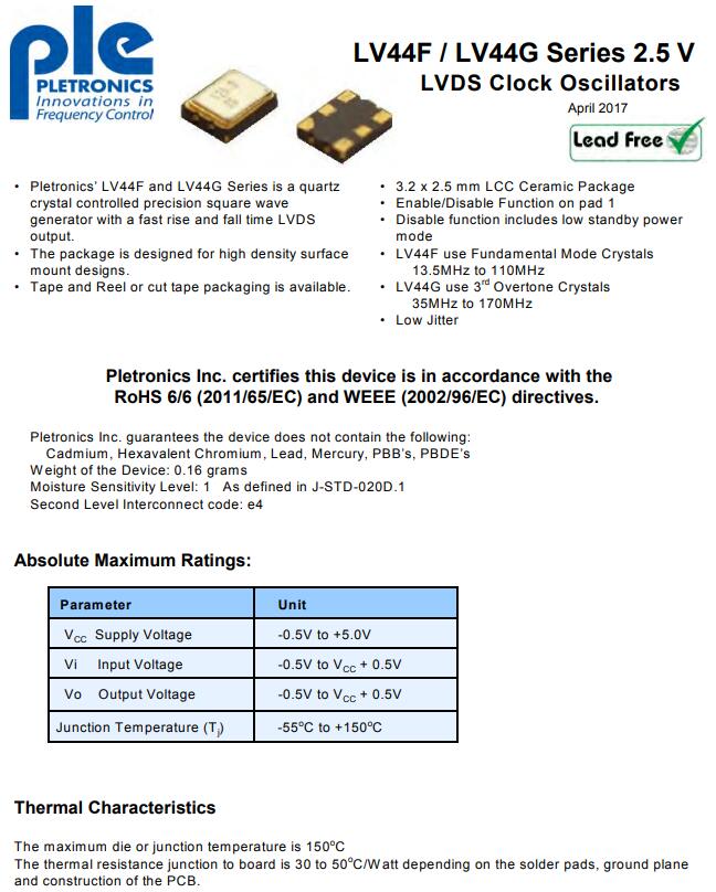 更多>>Pletronics晶振,LV44G,LV44F晶振,3225有源晶振