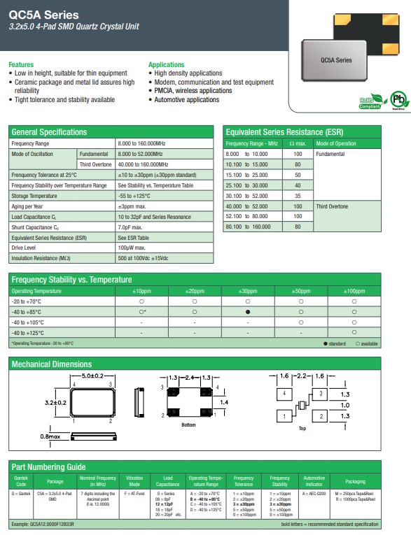 更多>>康泰克晶振,QC5A晶振,5032四腳晶振