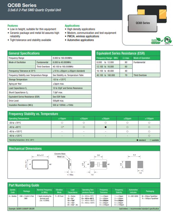 更多>>QANTEK石英晶體,QC6B晶振,6035二腳晶振