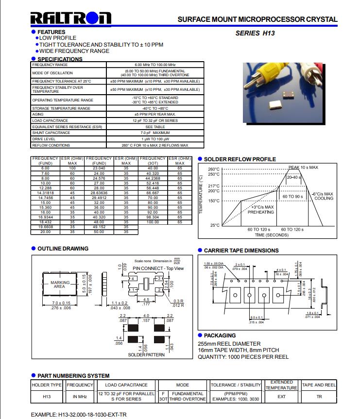 H13-13.000-16-5050-EXT-TR | H13 | 13.000MHz | 7.0 x 5.0mm | ± 50 ppm | ± 50 ppm | 16 pF | -40°C~+85°C |
