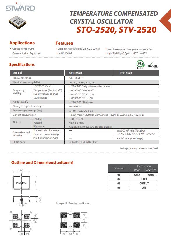 更多>>希華晶振,STO-2520,STV-2520晶振,2520小體積晶振