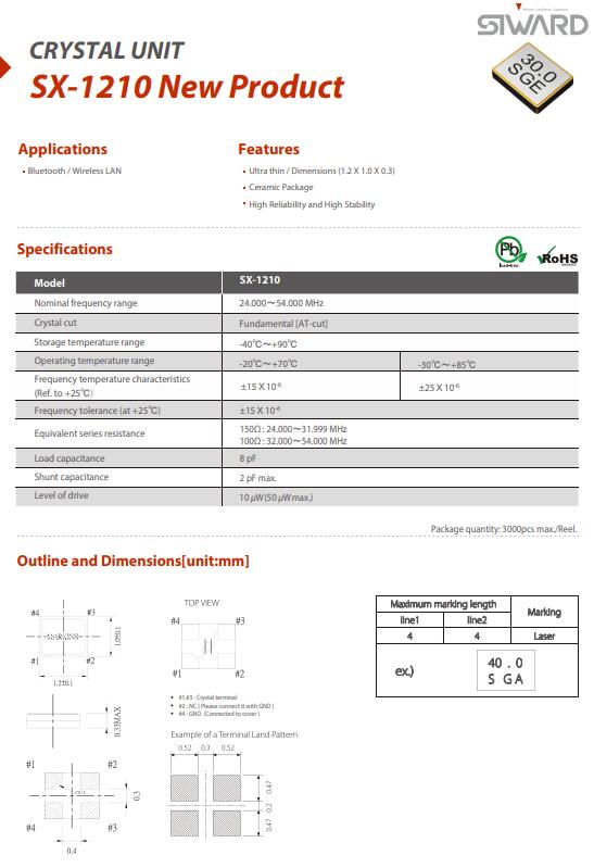 希華晶振,SX-1210晶振,1210迷你型晶振,體積小,焊接可采用自動貼片系統(tǒng),產(chǎn)品本身小型,表面貼片晶振,特別適用于有小型化要求的電子數(shù)碼產(chǎn)品市場領域,因產(chǎn)品小型,薄型優(yōu)勢,耐環(huán)境特性,包括耐高溫,耐沖擊性等,在移動通信領域得到了廣泛的應用,晶振產(chǎn)品本身可發(fā)揮優(yōu)良的電氣特性,滿足無鉛焊接的高溫回流溫度曲線要求.