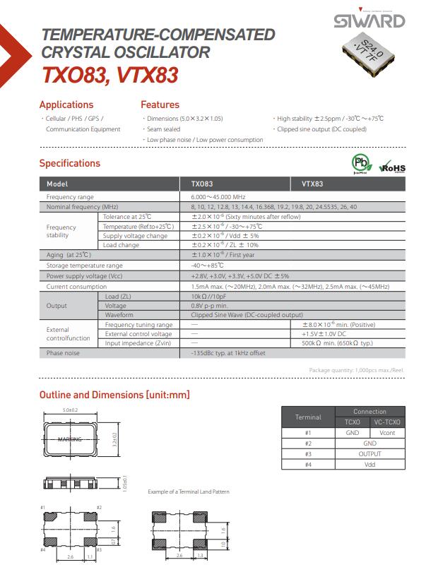 進口希華晶振,VTX83晶振,5032壓控溫補晶振