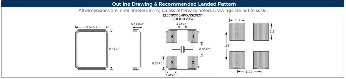 SXT22410AA16-25.000M | 2.5X2.0 SMD (4 PAD) CRYSTAL | 10pF | ±50ppm | 25.000M |