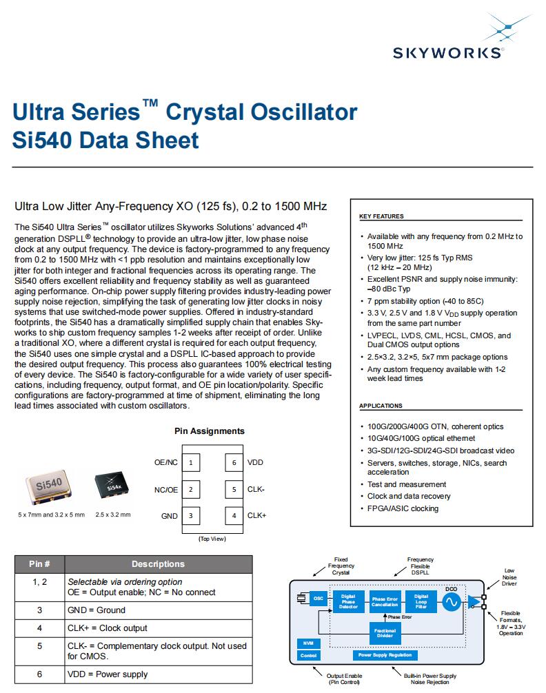 540BAA100M000BCG | Skyworks Solutions Inc. | Ultra™ Si540 | 100 MHz | LVDS | 1.8V ~ 3.3V | ±20ppm |
