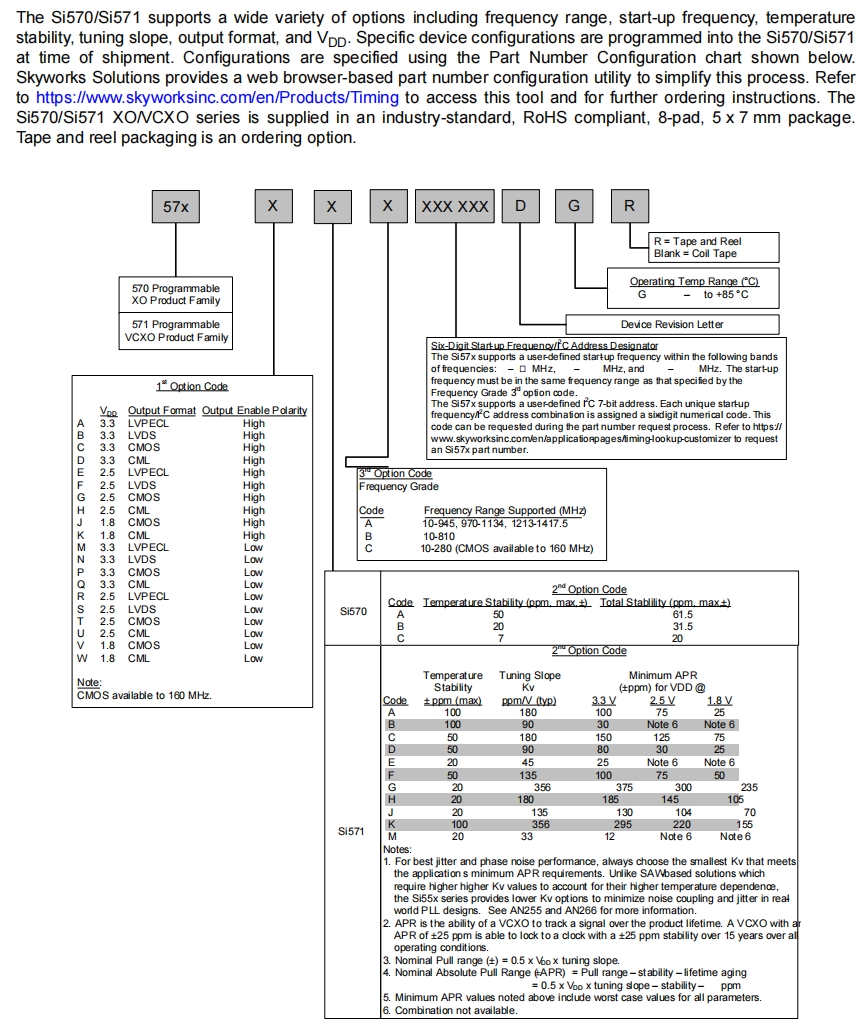 571ADA001243DGR | Skyworks Solutions Inc. | Si571 | 900 MHz | LVPECL | 2.97V ~ 3.63V | ±50ppm |