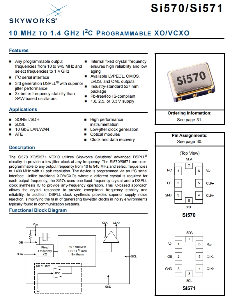 571AMA000501DG | Skyworks Solutions Inc. | Si571 | 1.333 GHz | LVPECL | 2.97V ~ 3.63V | ±20ppm |