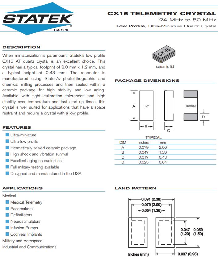 更多>>美國STATEK晶振,CX16AT晶振,2012兆赫茲晶振