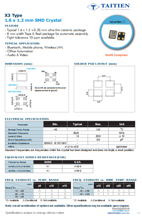 TAITIEN原廠編碼 | 生產(chǎn)廠家 | 型號 | 頻率 | 頻率穩(wěn)定度 | 頻率偏差 | 負載電容 | 工作溫度 |
