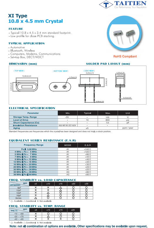 TAITIEN原廠編碼 | 生產(chǎn)廠家 | 型號(hào) | 頻率 | 頻率穩(wěn)定度 | 頻率偏差 | 負(fù)載電容 |