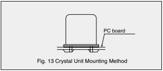 (3)安裝引線型晶振晶體單元時,我們建議設備應與PC聯系電路板和焊接方式,以防止疲勞和由于機械共振引起的引線斷裂(見圖。13)。