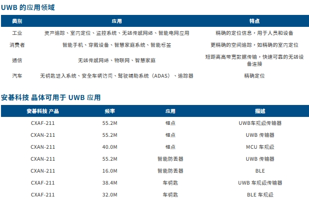 安基晶振的高性能晶體產(chǎn)品線滿足 UWB 技術(shù)在當(dāng)今短距離高帶寬應(yīng)用中的頻率控制需求,優(yōu)化無(wú)線通信。