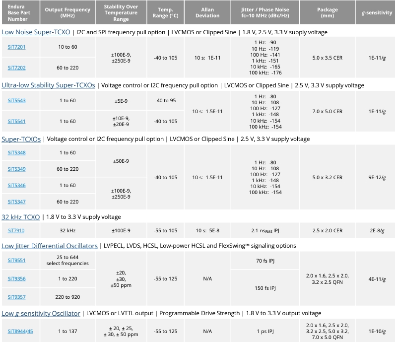 Endura 產品在工廠編程為客戶特定的配置,消除了與石英產品相關的漫長交貨時間和定制成本。所有 Endura 振蕩器均通過 SiTime Endura 工藝流程進行 100% 篩選,以現(xiàn)成的價格保證性能,并為航空航天和國防應用提供保修。