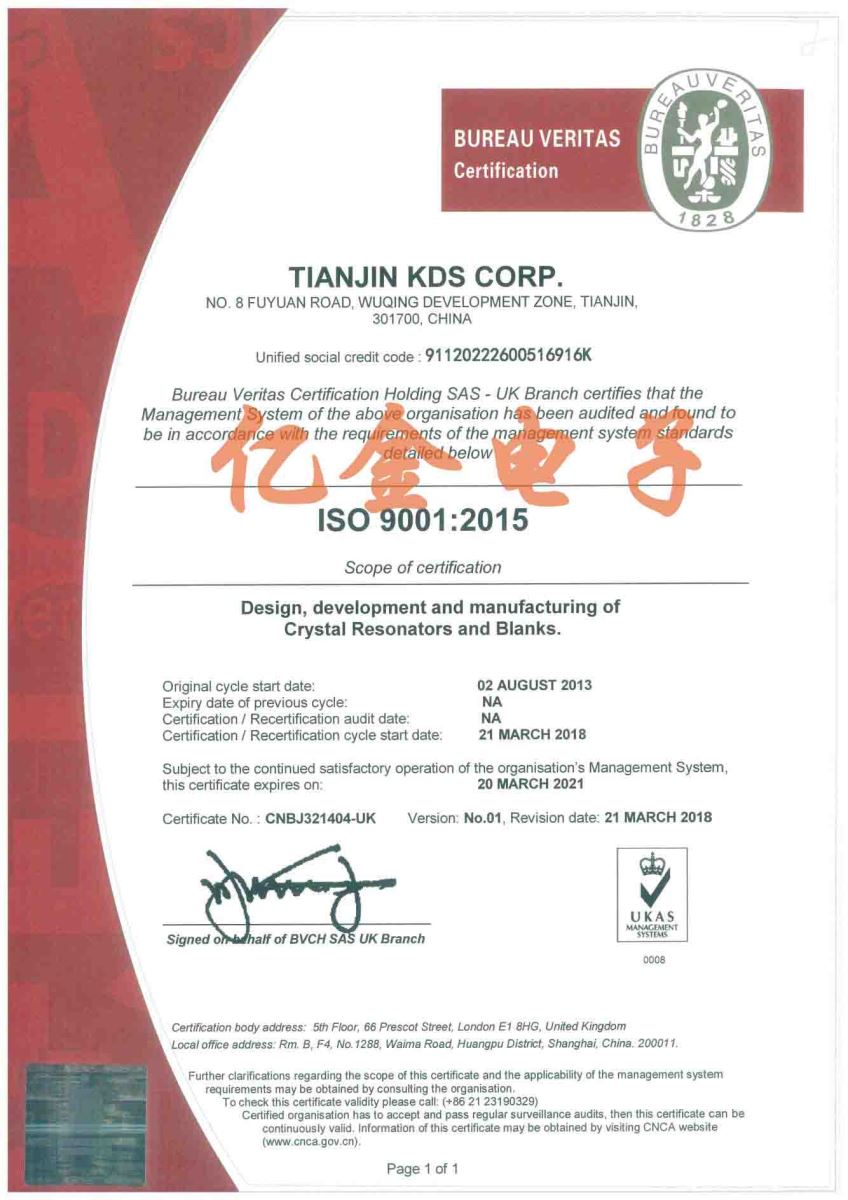 此文關(guān)鍵字: KDS晶振KDS國際認(rèn)證書