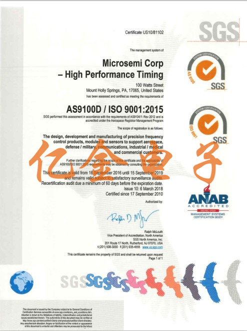 Vectron晶振集團被認證為AS9100供應(yīng)商.AS9100是基于一套的航空航天工業(yè)的質(zhì)量管理標準.(QMS)國際航空航天質(zhì)量集團(IAQG)制定的標準,滿足嚴格的質(zhì)量要求和獨特的要求,符合國防和商業(yè)航空航天業(yè)的需求.Vectron晶振符合AS/EN9100標準要求的認證主要針對領(lǐng)域直接影響可靠性并產(chǎn)生從初始設(shè)計到供應(yīng)鏈,生產(chǎn),測試和驗證的穩(wěn)健過程. AS9100認證類似于ISO9001:2000,其中有近100項額外要求適用于航空航天,并確保晶振產(chǎn)品的每個階段從計劃,采購和制造到裝運的實現(xiàn)受到控制,以便交付符合客戶要求的產(chǎn)品要求.