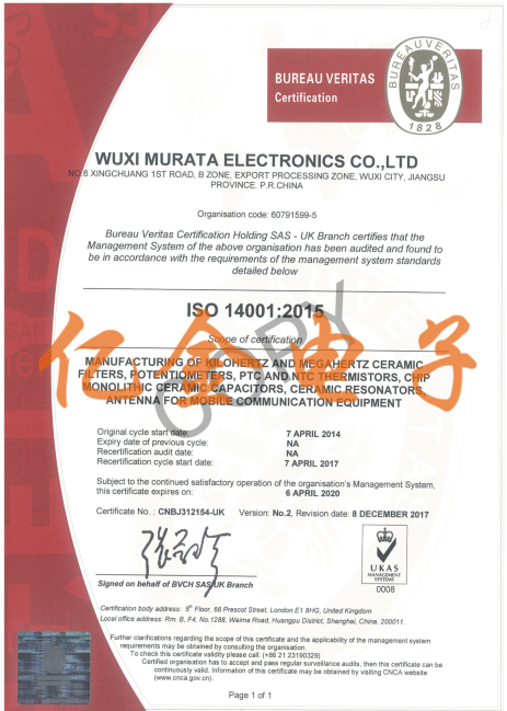 村田晶振ISO14001國際環(huán)保認(rèn)證