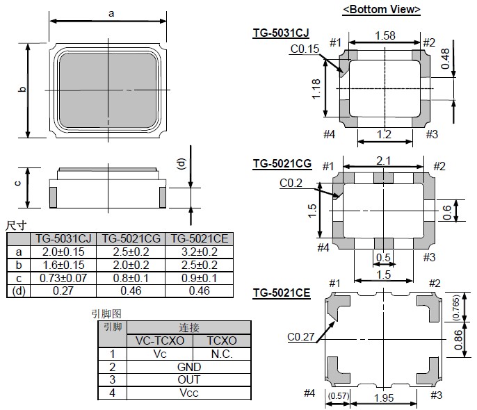 TG-5031CJ貼片晶振,TG-5021CG有源晶振,愛普生進口貼片晶振料號