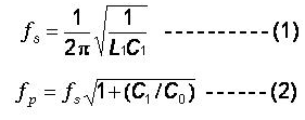 在評估共振時的等效線路時, 串聯(lián)諧振頻率及并聯(lián)諧振頻率, fs and fp , 是最重要的二個頻率參數(shù). 對于串聯(lián)諧振頻率及并聯(lián)諧振頻率( fs and fp )二者的關系, 我們可以用下列公式來表達: .png)