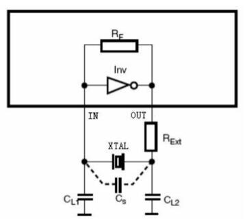 因?yàn)镮nv的電壓反饋是靠電容CL2,假設(shè)電容CL2過(guò)大,反饋電壓過(guò)低,可能會(huì)造成晶振振蕩不穩(wěn)定;假設(shè)CL2過(guò)小,反饋電壓過(guò)高,儲(chǔ)存能量過(guò)少,晶振則容易遭受外界干擾,也會(huì)輻射影響到外界電路中去。電容CL1的作用與電容CL2恰好相反。