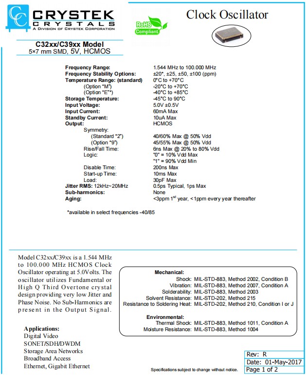 C3290-50.000 | Crystek晶振 | C3290 | XO (Standard) | 50MHz | ±100ppm |