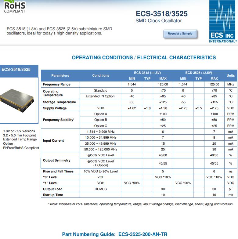 ECS-3518-080-B-TR | ECS晶振 | ECS-3518 | 8MHz | 0°C ~ 70°C |