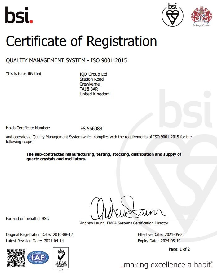 首頁晶振行業(yè)動(dòng)態(tài) 高標(biāo)準(zhǔn)的質(zhì)量管理體系彰顯IQD晶振的品質(zhì)態(tài)度