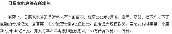 這次釣魚島事件與之前簽訂的《馬關(guān)條約》密切相關(guān),日本一次次潛入中國領(lǐng)土釣魚島,直至2012年9月3日日本提出購買該島嶼中方堅決反對,目前是怎樣中國是否達(dá)成協(xié)議?中國的領(lǐng)土作為中國人怎么會同意自己的東西分給欺凌自己的敵人,今日在網(wǎng)上看到一篇關(guān)于釣魚島引發(fā)的事件,日系家電上月起在華銷量全線大跌釣魚島事件成衰退催化劑,蘇寧國美一直銷售夏普,索尼,松下,東芝等日資彩電,據(jù)調(diào)查近月銷售明顯下滑,中國市場是日本企業(yè)盈利的重要來源,日本電子等很多行業(yè)主要靠在中國賺錢,如果中國動用經(jīng)濟(jì)制裁,“敲打”日本,日本企業(yè)將遭受嚴(yán)重?fù)p失,也有些人說只有腦殘才會抵制日貨,從上面的8月份電器銷量來看進(jìn)口晶振是否會雷同以上現(xiàn)象.