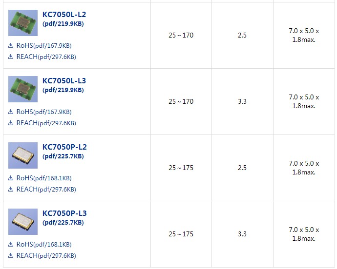 | KC7050P150.000L30E00 | AVX/Kyocera | OSC XO 150.000MHZ LVDS SMD | KC7050P-L3晶振 | XO | 150MHz | LVDS | ±50ppm | (7.00mm x 5.00mm) |
