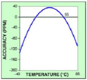 另一種有效提高計時精度的方法是使用具有溫度補償?shù)?a href="http://m.traditionalcraftsmenhomes.com/Golledgecrystal/CM9V.html" target="_blank" title="32.768K系列晶振">32.768K系列晶振,如DS32kHz,作為獨立的RTC時鐘源。這種器件經(jīng)過工廠校準,在擴展工業(yè)級溫度范圍內(nèi)(-40°C至+85°C)能夠提供±7.5ppm的精度。TCXO的作用是將晶體拋物線變得平坦。如圖