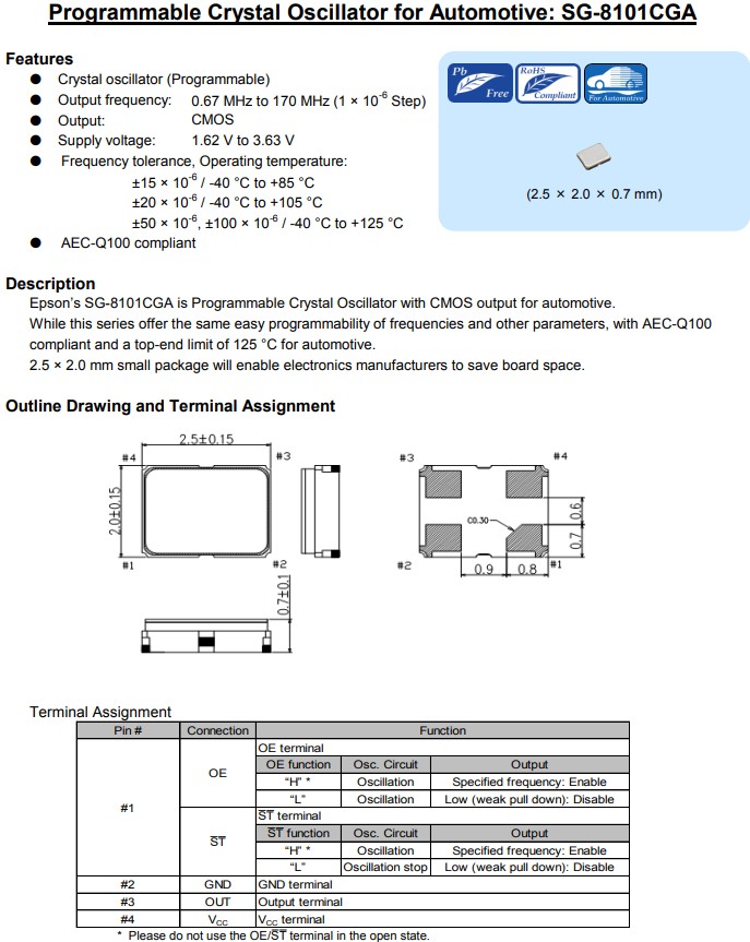 X1G005171003700 | 20.000000MHz | SG-8101CGA | 2.50x2.00x0.80mm | CMOS |