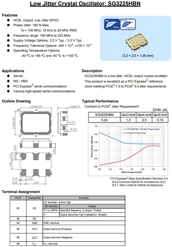 X1G005141000300 | SG3225HBN | 100.000000MHz | 3.20x2.50x1.20mm | HCSL | 3.135 to 3.465 V |