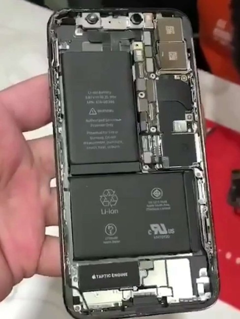 從上圖中我們可以很清楚的看到,內(nèi)部元件整體布局和之前幾代iPhone很相似,但也有明顯的變化,最大的不同就是其擁有兩塊電池,電池一橫一豎呈L形排列,最大化的利用了機(jī)身內(nèi)部空間,結(jié)構(gòu)看起來(lái)相當(dāng)緊湊.同時(shí),PCB主板面積也小了很多,差不多只有iPhone 8 Plus的一半,內(nèi)部配備了兩塊電池,蘋(píng)果是為OLED屏幕做足了準(zhǔn)備.