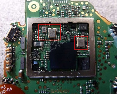 它是主系統(tǒng)CPU,即飛思卡爾(現(xiàn)恩智浦)MK28FN2M0ACAU15 Kinetis K28基于Arm Cortex-M4的應(yīng)用處理器.然而,法拉第籠一角有個大IC,其身份是個謎.另一款Garmin手表(型號:A03405)有塊類似IC,FCC有照片聲稱它是Wi-Fi收發(fā)器,但由于我們已經(jīng)在PCB的另一側(cè)識別了該芯片,因此我們知道在這個特定設(shè)計中并非如此.