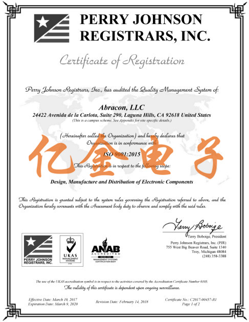 美國(guó)Abracon LLC是主要生產(chǎn)石英晶體,SMD晶振,有源晶振等頻率元件的知名制造商.產(chǎn)品均選用優(yōu)異材料符合歐盟ROHS要求.Abracon晶振根據(jù)多德-弗蘭克華爾街改革和消費(fèi)者的沖突礦產(chǎn)條款的要求2010年保護(hù)法案,繼續(xù)與我們所有合格供應(yīng)商積極合作確保我們的產(chǎn)品不含任何不符合環(huán)保要求的材料.