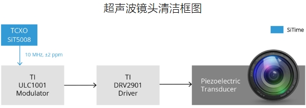 2、溫補晶體振蕩器 (TCXO) 在 -40°C 至 +85°C 范圍內(nèi)穩(wěn)定性低至 ±0.1 ppm (SiT5356)。對于超聲波鏡頭清潔,SiTime 推薦使用 SiT5008(在 -40°C 至 +85°C 范圍內(nèi)為 ±2 ppm)。