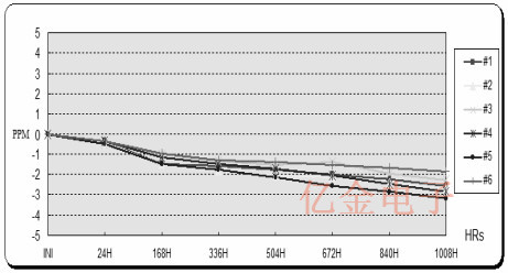 小尺寸(2.5mmx2.0mm)20MHz石英晶體,去了最大驅(qū)動器水平100μW,通過加速老化在85oC至1000小時650μW功耗和950μW耗散時的1500小時分別.正如所料,高于正常漂移(在這種情況下)觀察石英晶振頻率高驅(qū)動.石英晶體雖然經(jīng)歷過沒有運動阻力顯著增加,沒有災難性的失敗(晶體破裂或破碎)是可以檢測到的,這無疑是個極大的好消息.