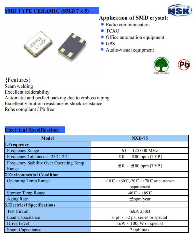 臺灣津綻NSK晶體主要生產(chǎn)產(chǎn)品為全系列石英晶體振蕩子即:石英晶體諧振器,(DIP晶體 SMD 晶體),石英晶體振蕩器 (SMD OSCILLATOR) 和石英晶體控制振蕩器 (SMD晶振 VCXO壓控晶振).